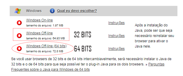 Caso esteja com este problema tente baixar e instalar o Java offline na arquitetura 32 e 64 bits. (mesmo sabendo que seu computador é 64 bits).